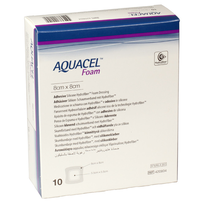 AQUACEL Foam vereint Komfort und Aufnahmekapazität eines Schaumverbandes mit den heilungsfördernden Eigenschaften der gelierenden Wundkontaktschicht.