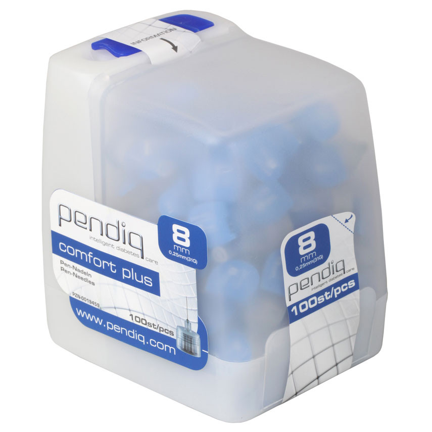 100 sterile Pennadeln Pendiq comfort plus 0,25 x 8 mm (31G) in Sicherheits Pen-Nadel Box